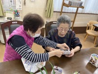 今日は昨日のお花見日和と打って変わって雨になりました。リビングではチラシを使って箱作りに挑戦ヽ(^o^)丿どうじゃったかいね~?こう折るんよ~!などと会話が聞こえスタッフも一緒に混ざり箱作り!出来た~!(^^)!あ~スッキリした!と悩みながらされていた入居者様も大喜びでした。昼食後もしっかり復習されていました(^0_0^)