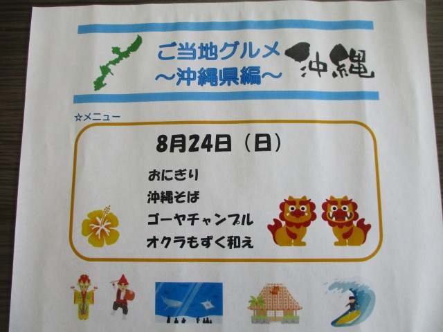 *おにぎり *沖縄そば *ゴーヤチャンプルー *オクラもずく和え でした。