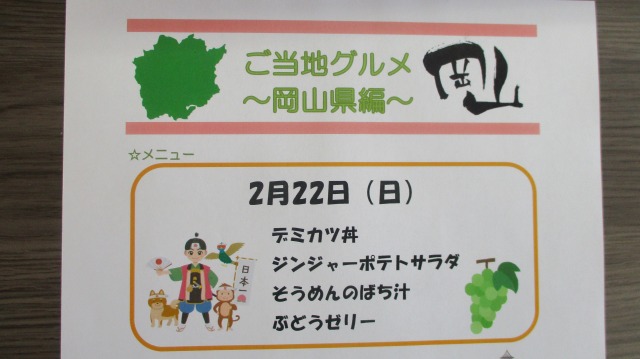 今日2/22(日)のお昼ご飯を紹介致します。ご当地グルメ【岡山県】編!!