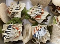 米粉サンドパンに、レタス、チーズ、トマト、