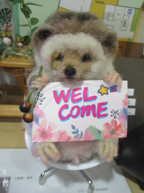 はぴね神戸魚崎の玄関でお出迎えをしてくれているハリネズミくんがいます✧♡なんとご家族様の手作りなんです✨✨✨本当にかわいい(⋈◍>◡<◍)。✧♡来館される方々をリアルな可愛さで癒してくれています‼