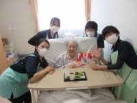 皆様から、お歌とプレゼントが贈られ、にこやかな笑顔で記念撮影!