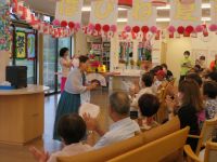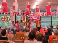 スタッフとその知り合いとその孫が来てくれて太鼓をたたき盆踊りを踊りました。