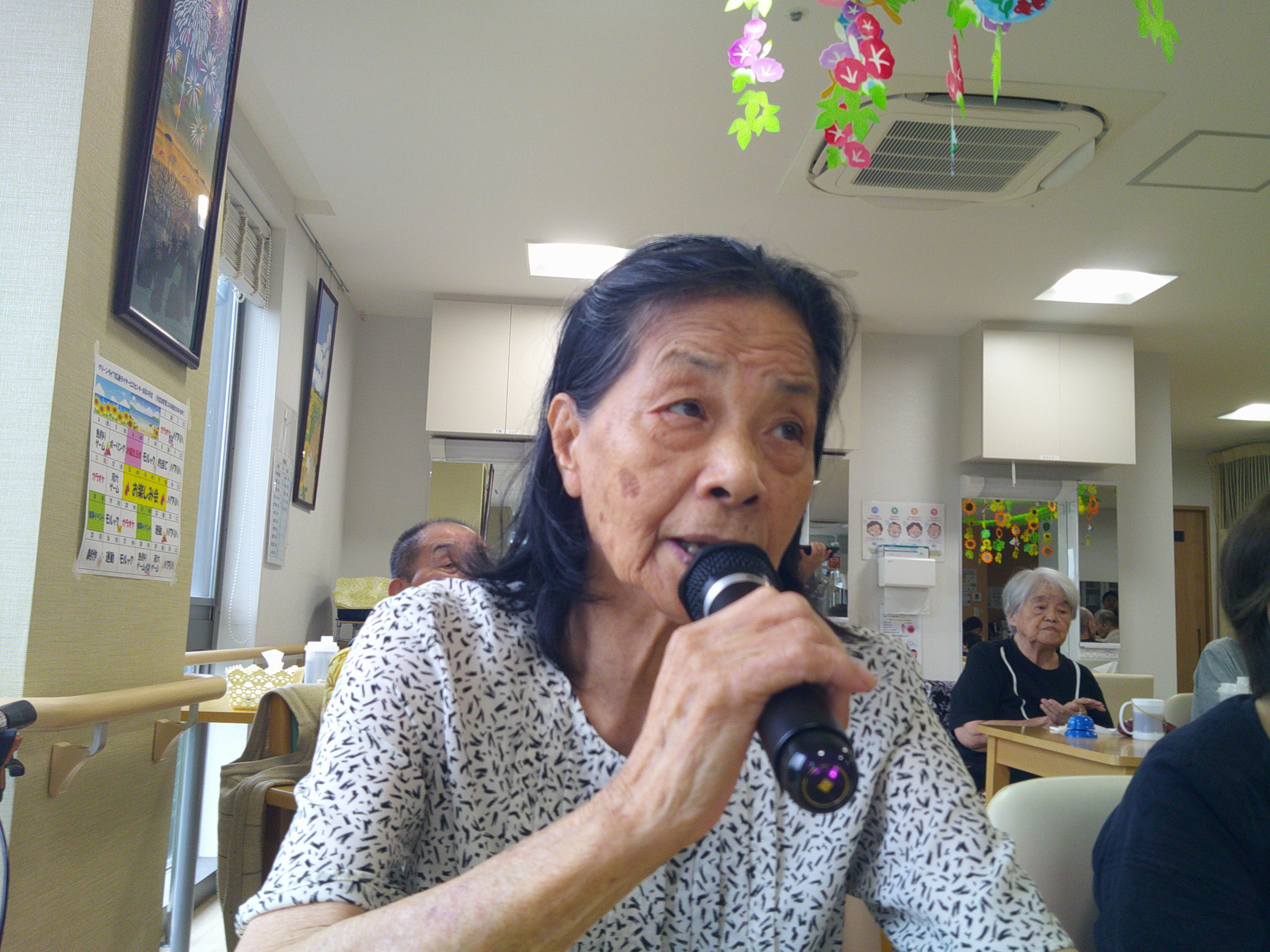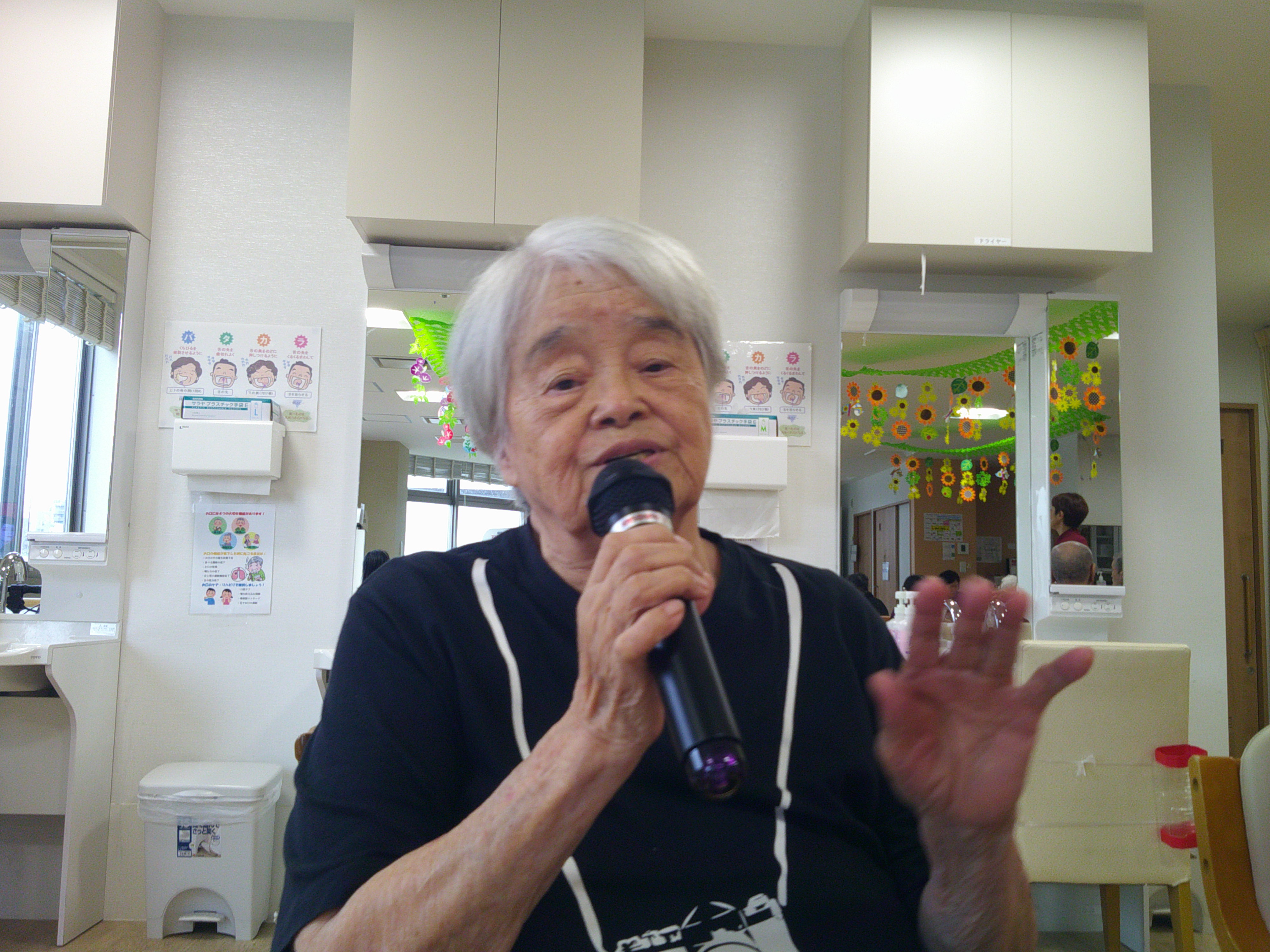 今日の午後は納涼祭を行いました。提灯を飾りはっぴを着て雰囲気を作り皆さんでヨーヨー釣りをしたりと楽しみました。「童心に返ったようだよ。」「孫にあげようと思うのよ」と皆さん頑張って釣っていました。普段とは違うこともあり皆さんのお顔が輝いているようでした。来年もまた納涼祭をしましょうね(^^♪
