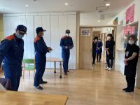 本日はスタッフ、入居者様参加の避難訓練を実施しました。下松消防局の消防士の方々からご説明を頂き、皆真剣に取り組みました。夜間の火事を想定し、消火の仕方、避難の手順、逃げ道の確保など一連の流れを実演し、いざという時の動きを再確認しました。一つ一つに消防士の方からアドバイスを頂きスタッフそれぞれ自分たちの動きの良かった点、悪かった点を反芻し、災害時に迅速に行動できるようしっかりと学びました。下松消防局の皆様、大変ありがとうございました。