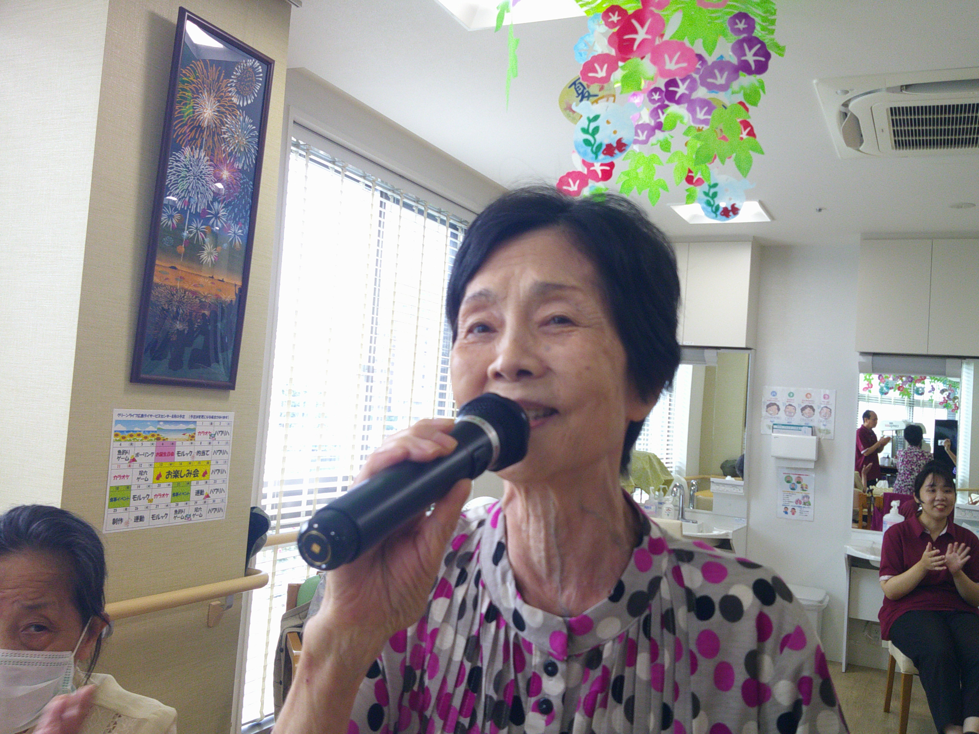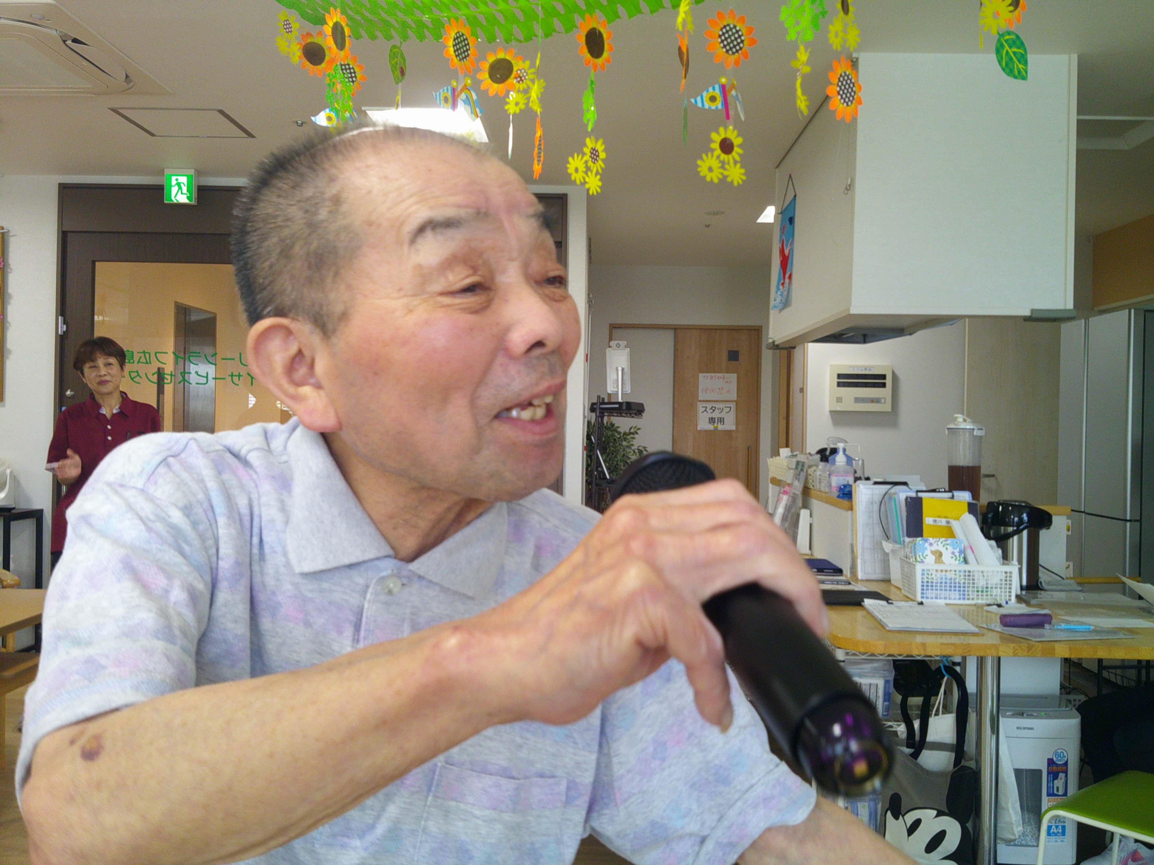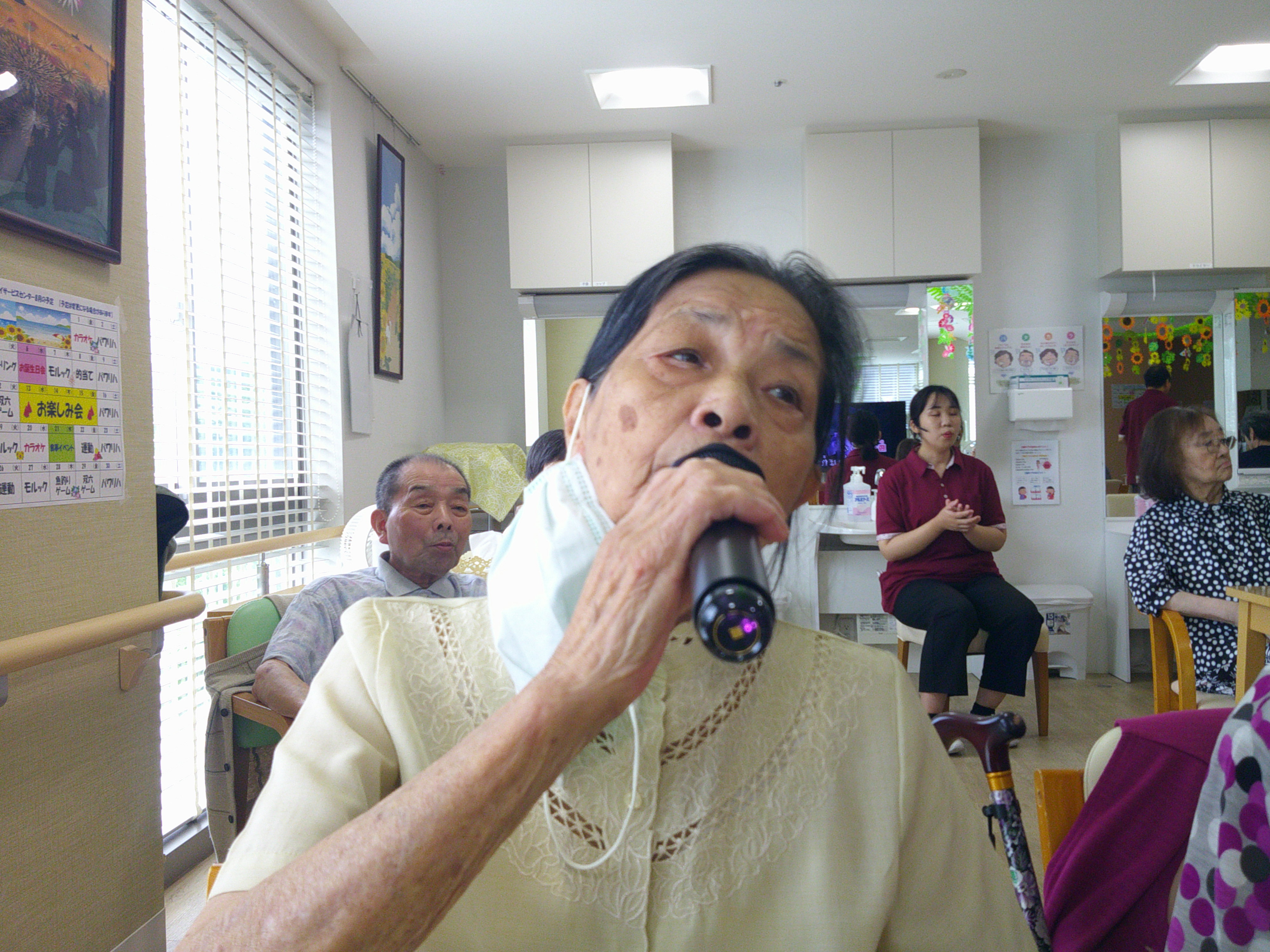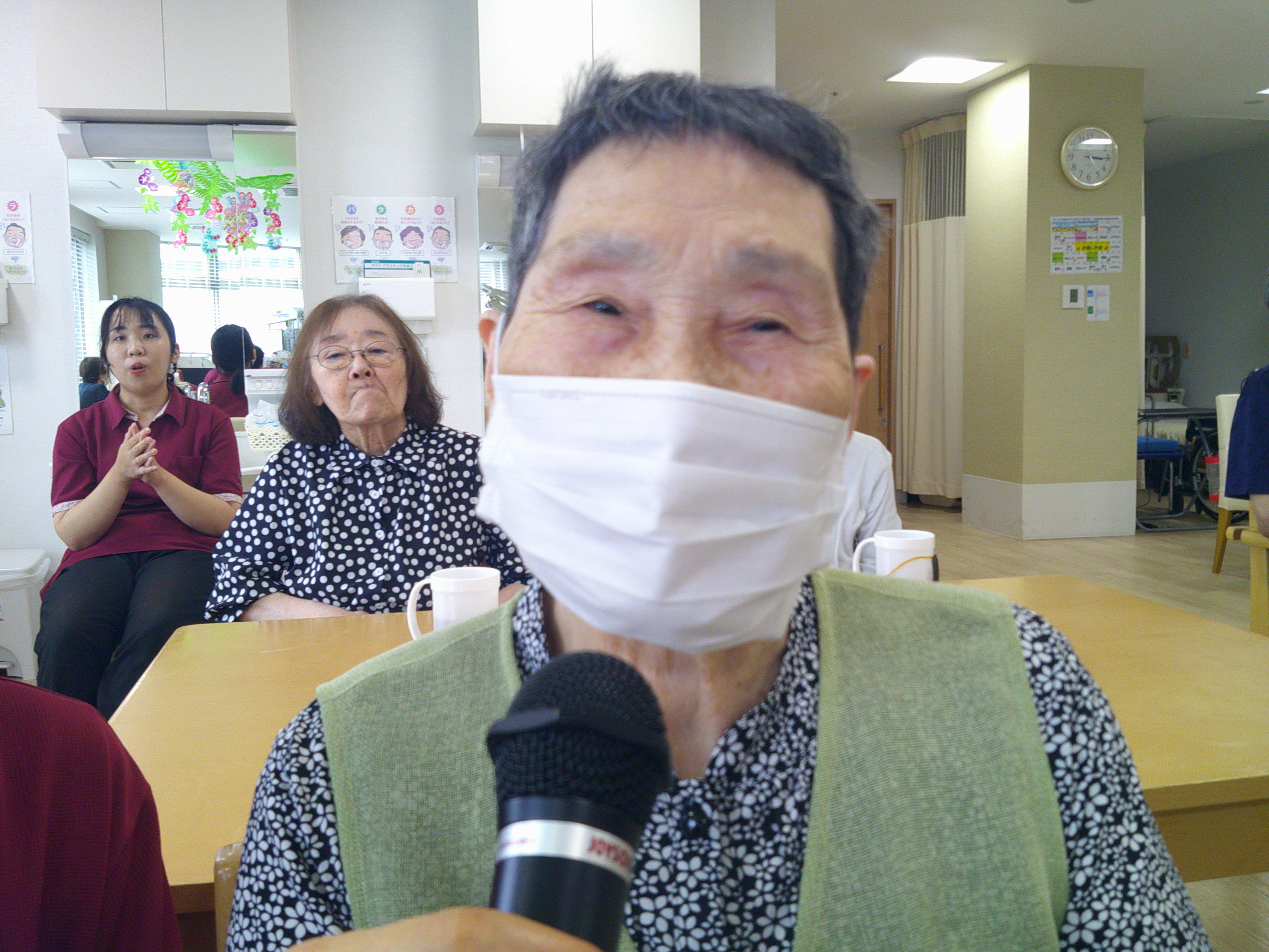 こんにちはデイサービスです。今日は夏祭りで踊る「だんべー踊り」の予行練習をしました。職員が前に出て踊り、皆様には鳴子を持って元気よく振っていただきました。毎年恒例なので「だんべーの季節がやってきたねー♪」「そーだんべーって大きな声で叫ぶのが醍醐味だよね」と嬉しそうに仰る方もいらっしゃいました(^^♪ 他にも「炭坑節」や「東京音頭」など定番の曲を流すと楽しそうに踊って下さり、最後に「ヤングマン」をかけるとデイホーム内は一気に盛り上がりました♪ 夏祭りでも今日の練習の成果が出せること間違いなし(^^♪