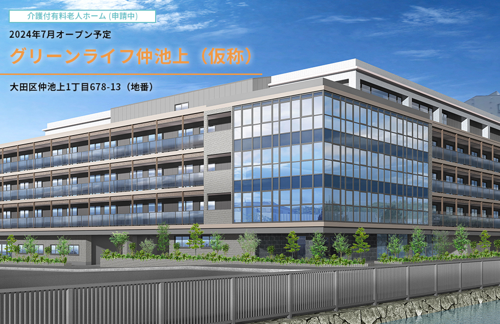 グリーンライフ仲池上の概要 施設の種類:介護付有料老人ホーム開設年月:2024年07月01日所在地:〒146-0081 東京都大田区仲池上1-27-20敷地概要:1954.41㎡建物概要:延べ面積 5309.95㎡、鉄骨造/5階建総定員:123名 【建設中の様子】 2024年6月 【建設中の様子】 2024年5月 【建設中の様子】 2024年4月 【建設中の様子】 2024年3月 【建設中の様子】 2024年2月② 【建設中の様子】 2024年2月① 【建設中の様子】2024年1月 【完成イメージ】2023年12月 【建設中の様子】2023年11月 【建設中の様子】2023年10月 【建設中の様子】2023年9月