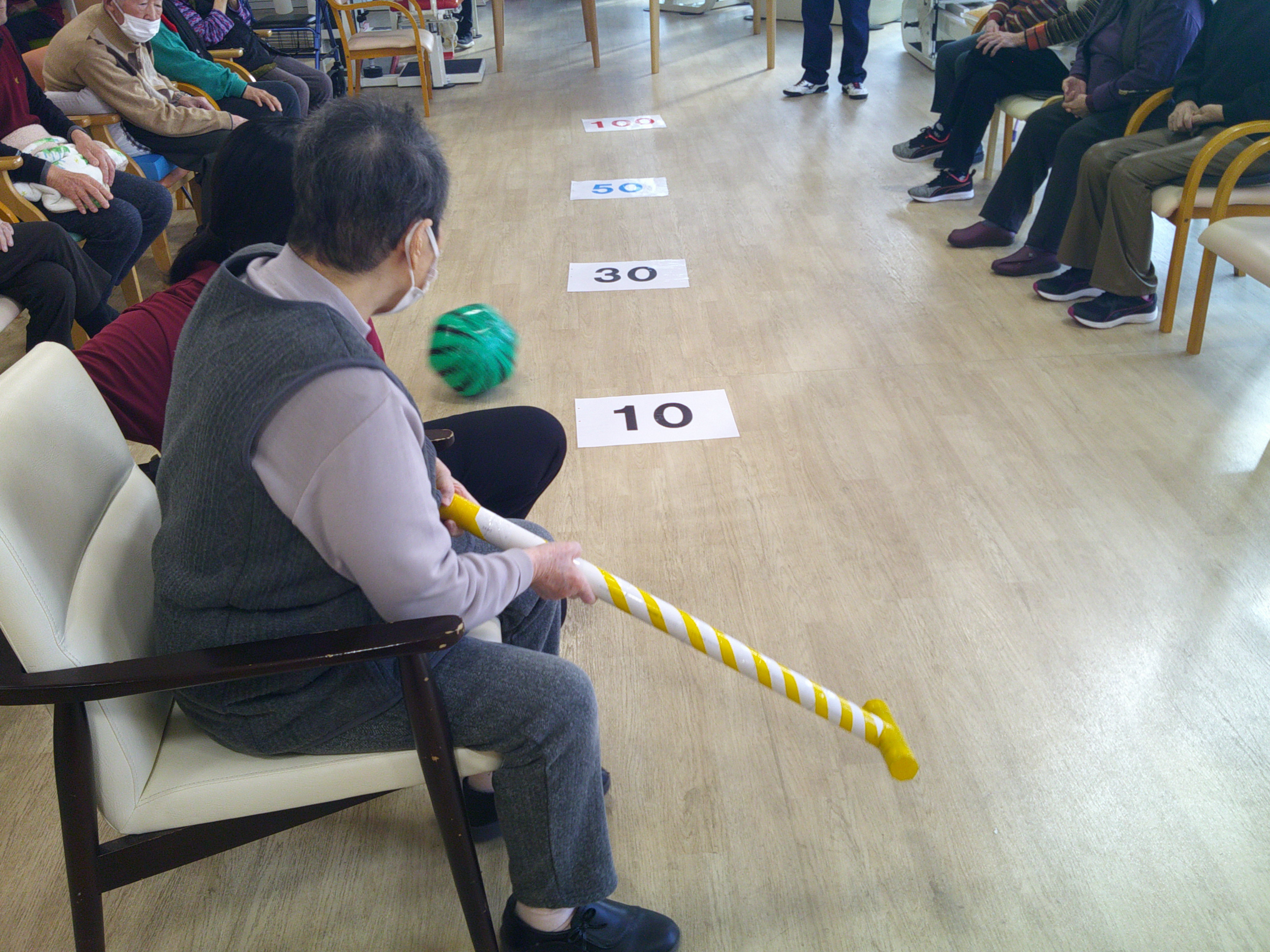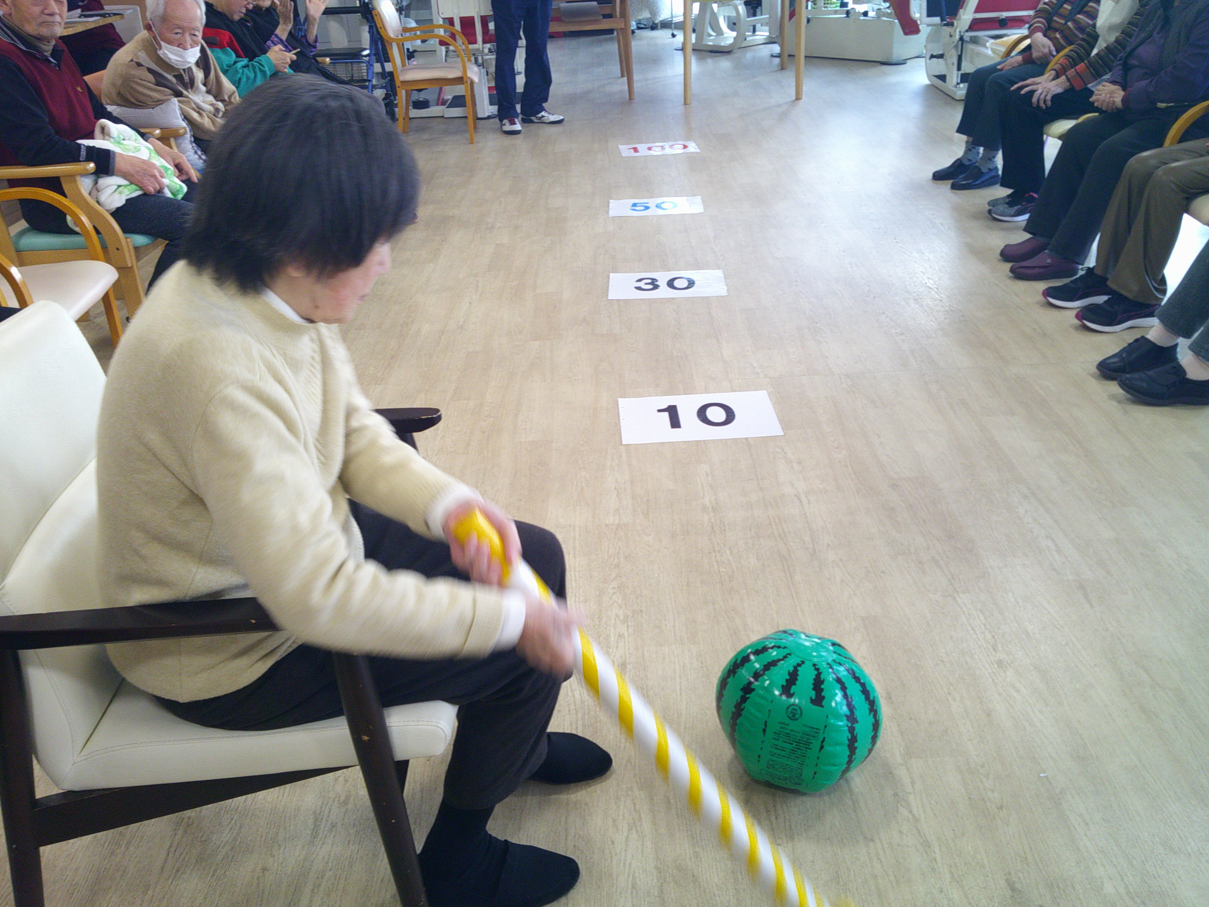 本日のレクリエーションは“何点まで飛ばせるかな”という