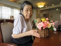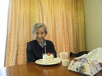 同じテーブルの入居者様とお誕生日のお祝いをさせていただいています。「わあ!嬉しい」と喜ばれていました。