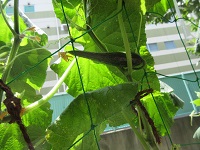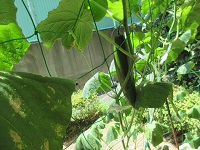 昨年栽培したきゅうりがとても美味しくて評判が良かったので、今年も栽培しました。この夏の酷暑のせいか、なんときゅうりが逆三角形の形になって実ってます。葉っぱに阻まれわかりづらいですが、ご紹介させて頂きます。