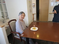 O様はずいぶん前から「私は7月30日が誕生日です」と楽しみにされていました。職員がハッピーバースデーの歌を歌うと「嬉しい、ありがとう」と喜んでくださいました。
