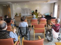 今日は音楽療法講師を施設にお招きして音楽療法を開催しました。