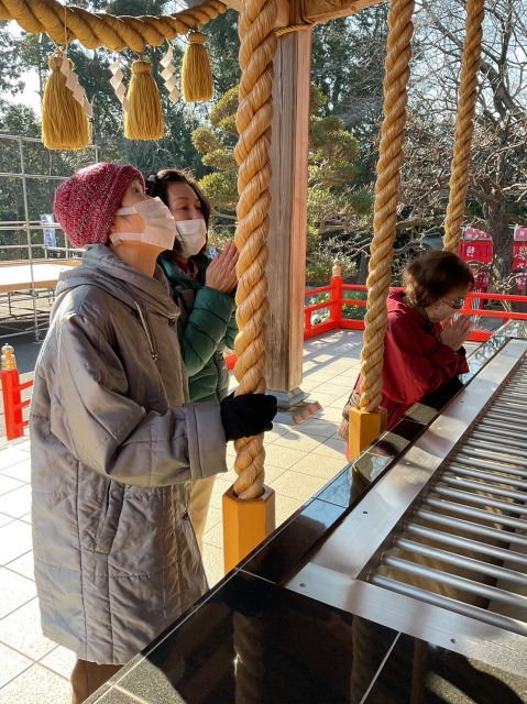 お賽銭を入れ、願いを込めてみなさん手を合わせていました☺