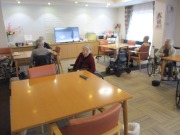 今日の午後はカラオケを楽しみました!ランダムに流れてくる曲に合わせてそれぞれのペースで歌っていただきました!