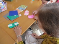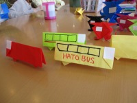 作品は「バス」です。折るポイントごとに丁寧に説明をいただきながら進めていき