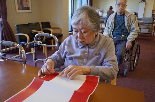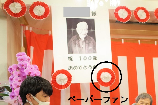 2階の入居者様にご協力いただき、イベントの装飾としてペーパーファンを手作りしてみました😊