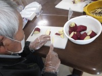 こんにちは、デイサービスです。今日は揚げない大学芋作りに取り組んでいただきました。さつまいもを細長く切って、油をひいたホットプレートで焼いて、砂糖、しょうゆ、みりん、黒ゴマで味付けをします(^○^)さつまいもが固いので細長く切るのに苦戦するかと思いましたが、家事歴〇十年のベテランのご利用者様ばかりなので手際よく行ってくださいました。味付けも完璧でとても美味しく仕上がりました♪大好評でもっと食べたいという方がたくさんいらっしゃいましたが、お夕飯にひびかないよう適量に召し上がっていただきました(*^_^*)