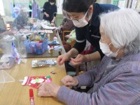 こんにちは、デイサービスです。昨日に引き続き今日もミトンのクリスマス制作を行いました。色画用紙で作ったミトンの台紙におはながみの雪だるまやマスキングテープ、シール、折り紙で作ったブーツ等を貼りつけてデコレーションしてもらいます(*^_^*)雪だるまへかわいらしい表情を描いたり、シールで雪をふらす風景を表現したり、皆さんご自分だけのオリジナルミトンの作成を楽しんでくださっていました♪完成作品はデイルームにしばらく飾らせてもらう予定です(*^_^*)