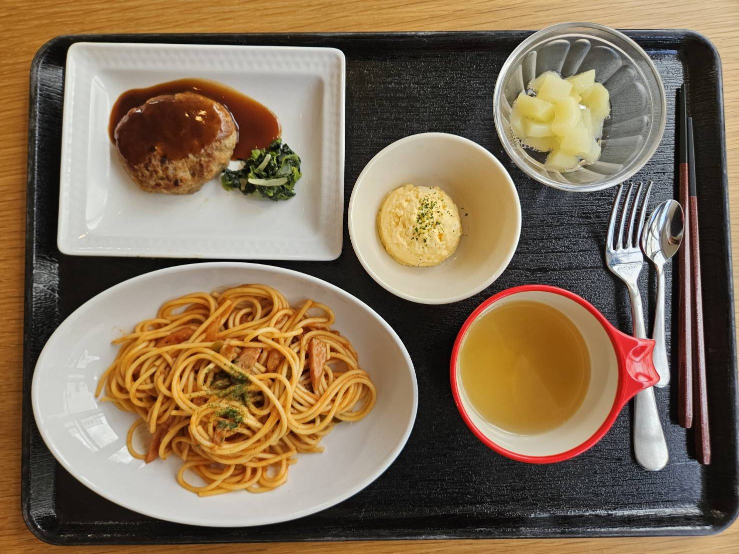 ナポリタンとハンバーグ🍝