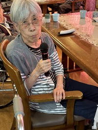 昼食前には、大きな声で童謡を歌い、夕食前にはミニカラオケ大会にて