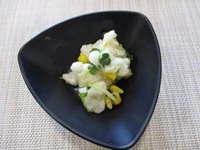 「カリフラワーはシャキッと歯ごたえがよく👌🏼コーンと貝割れで彩りも良く