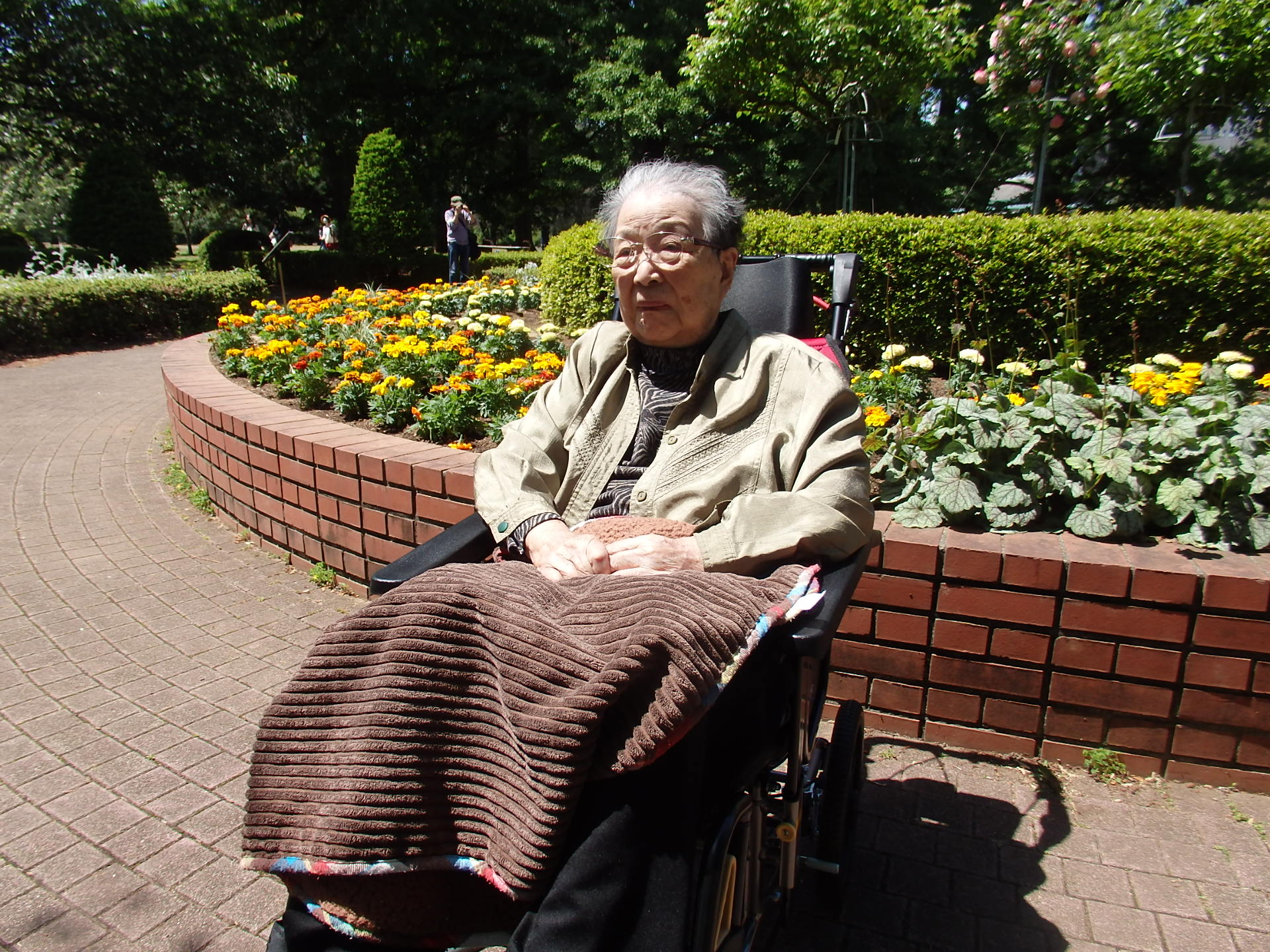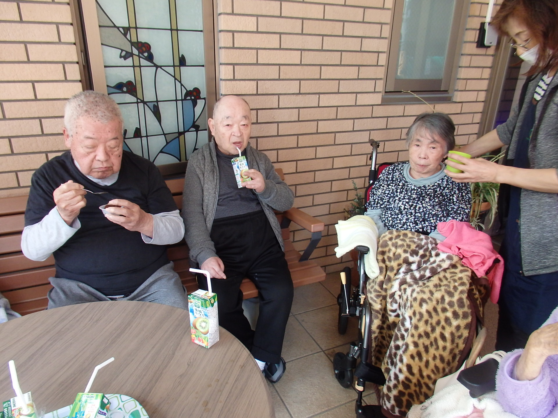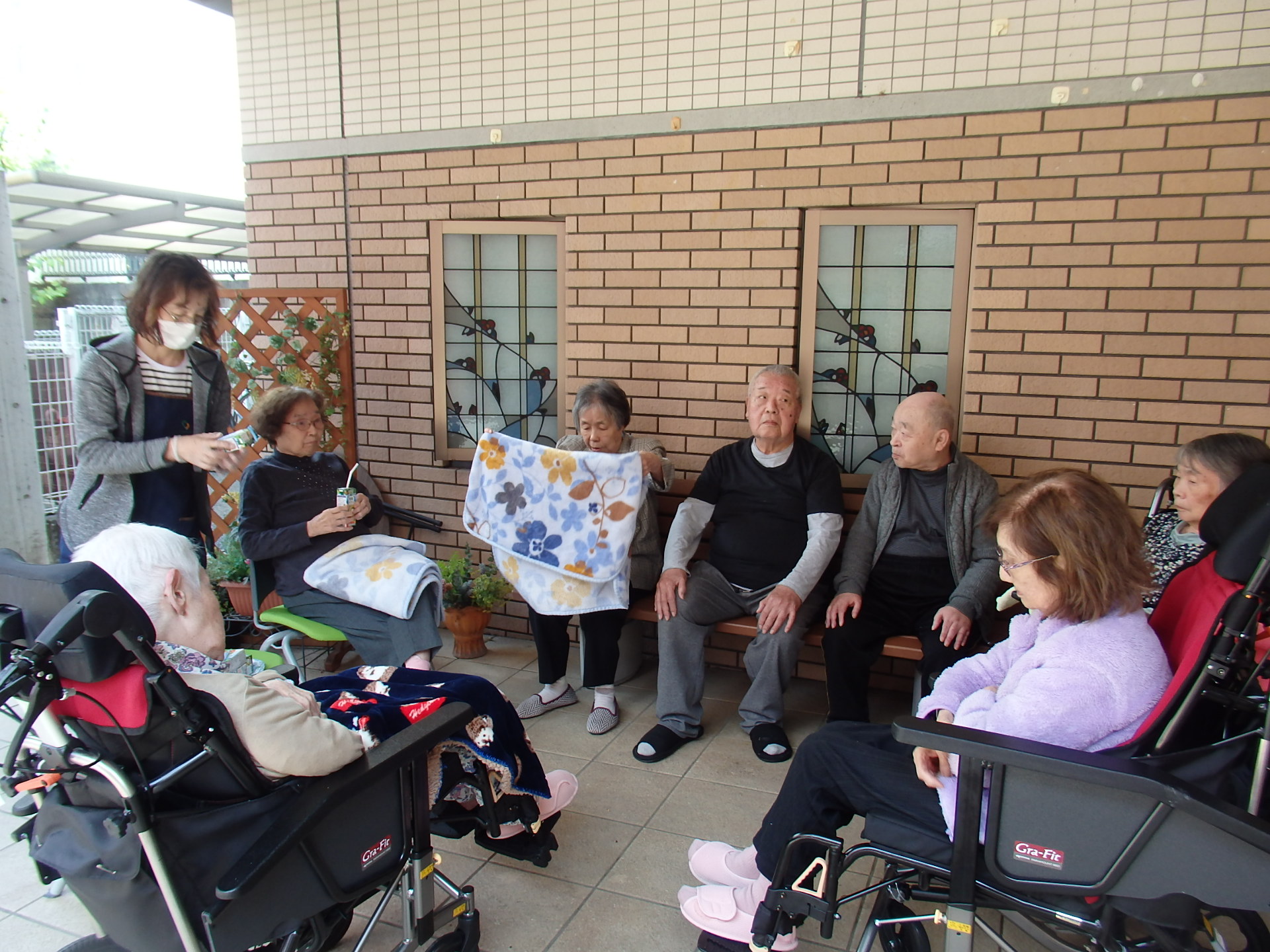 とてもお天気の良い日だったので、3階入居者様全員で、1階玄関前にて