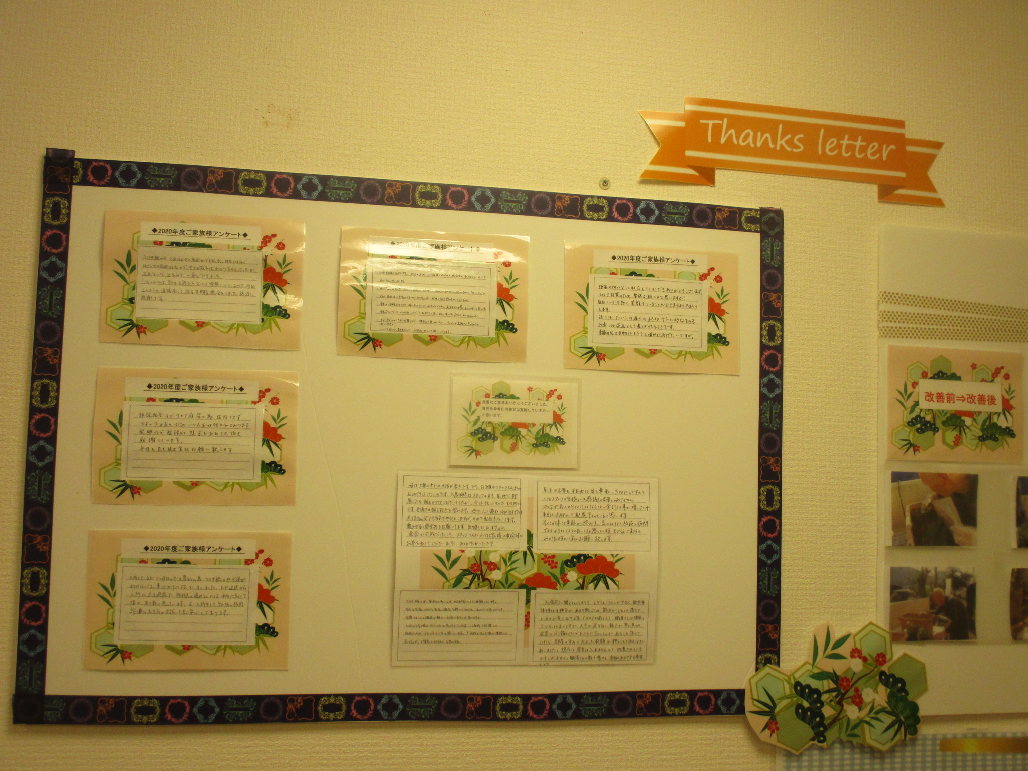 又入り口にはお客様アンケートを掲示してあります。このアンケートを受けて改善したり、ご要望に答えていきたいと思います。