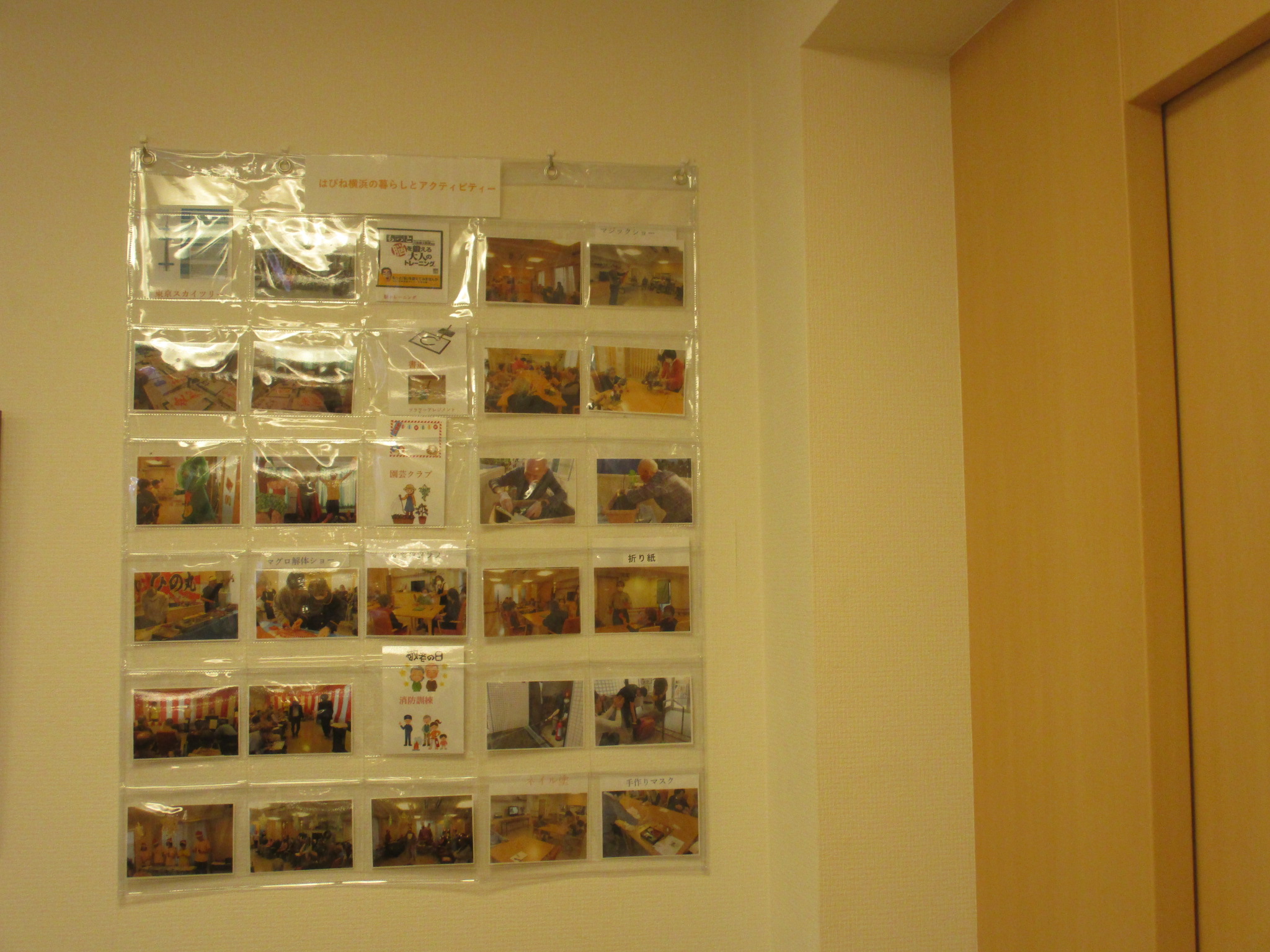 エレベーター前には掲示板でアクティビティーや季節の行事もお伝えしてあります。