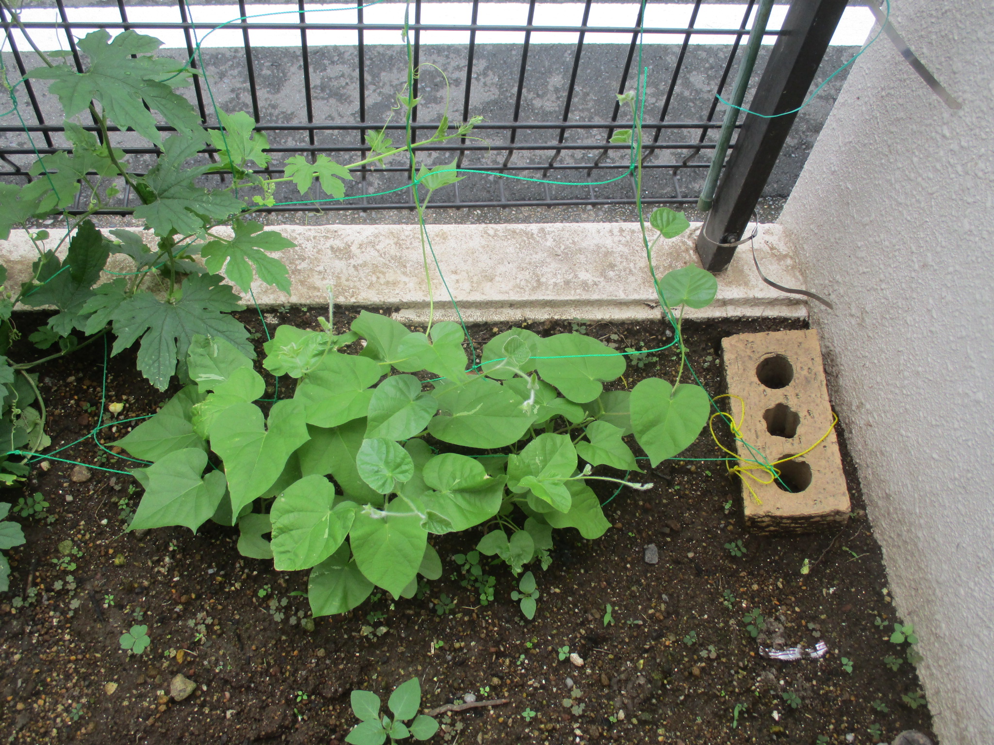 野菜と一緒に近所の方に頂いた朝顔の種を植えました。
