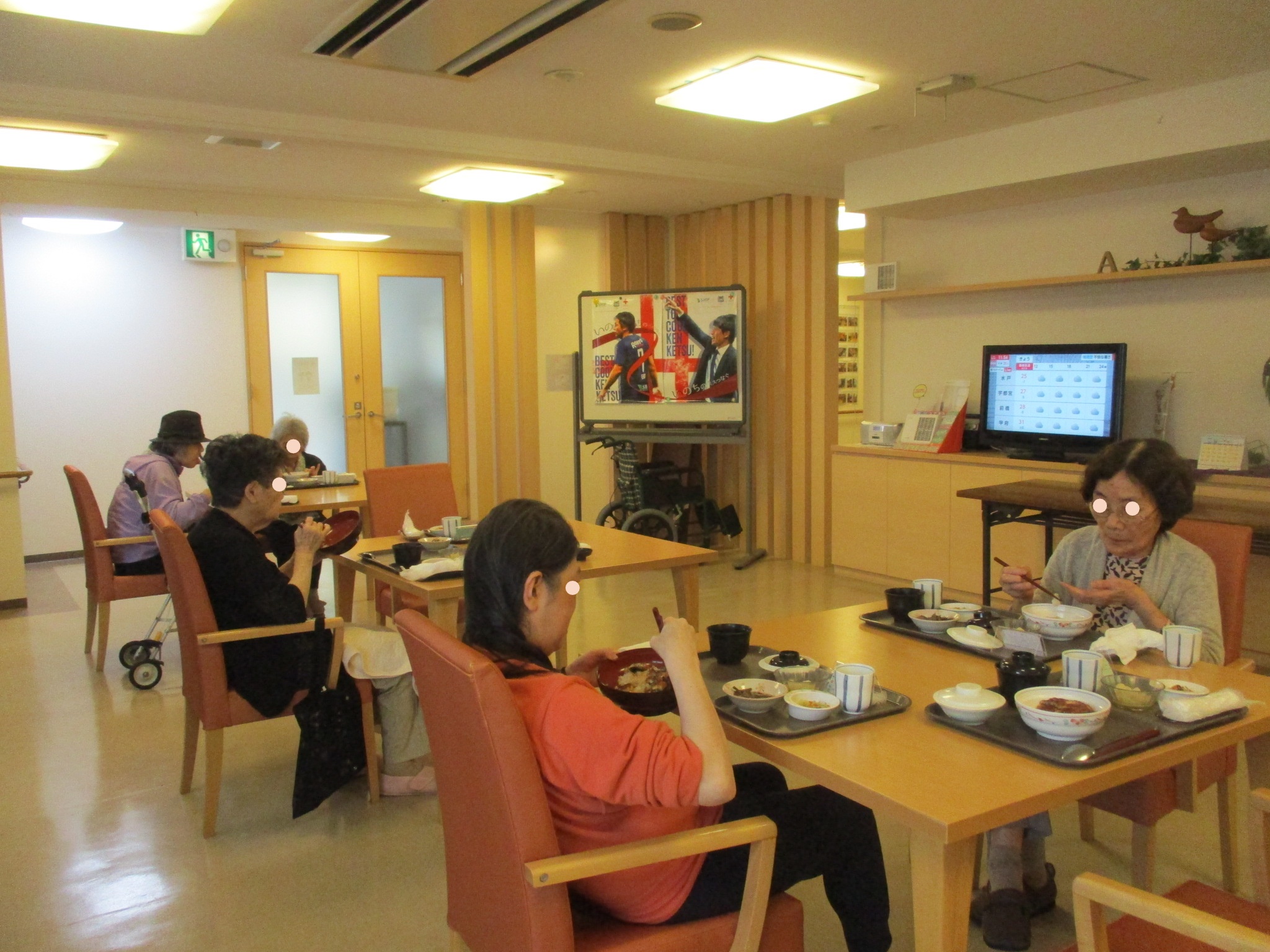 中々美容室に行けない入居者様にとって月一回の美容室は朝から順番待ちになるほどの人気です。