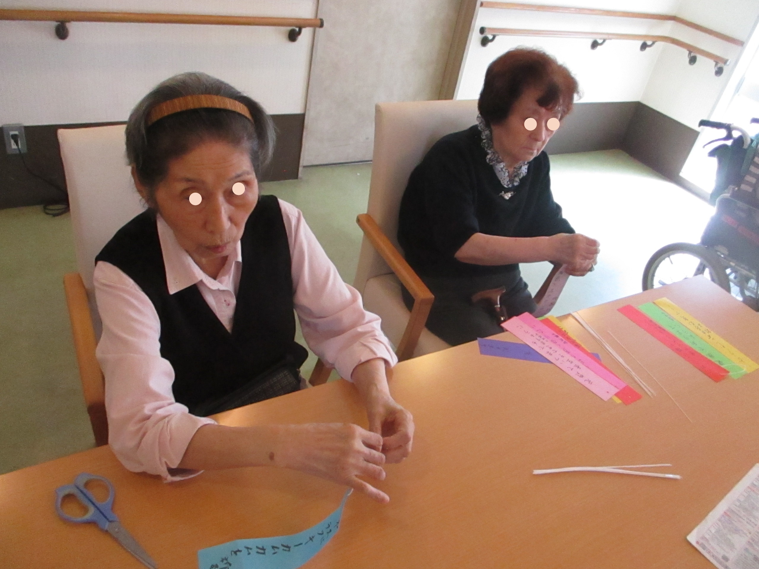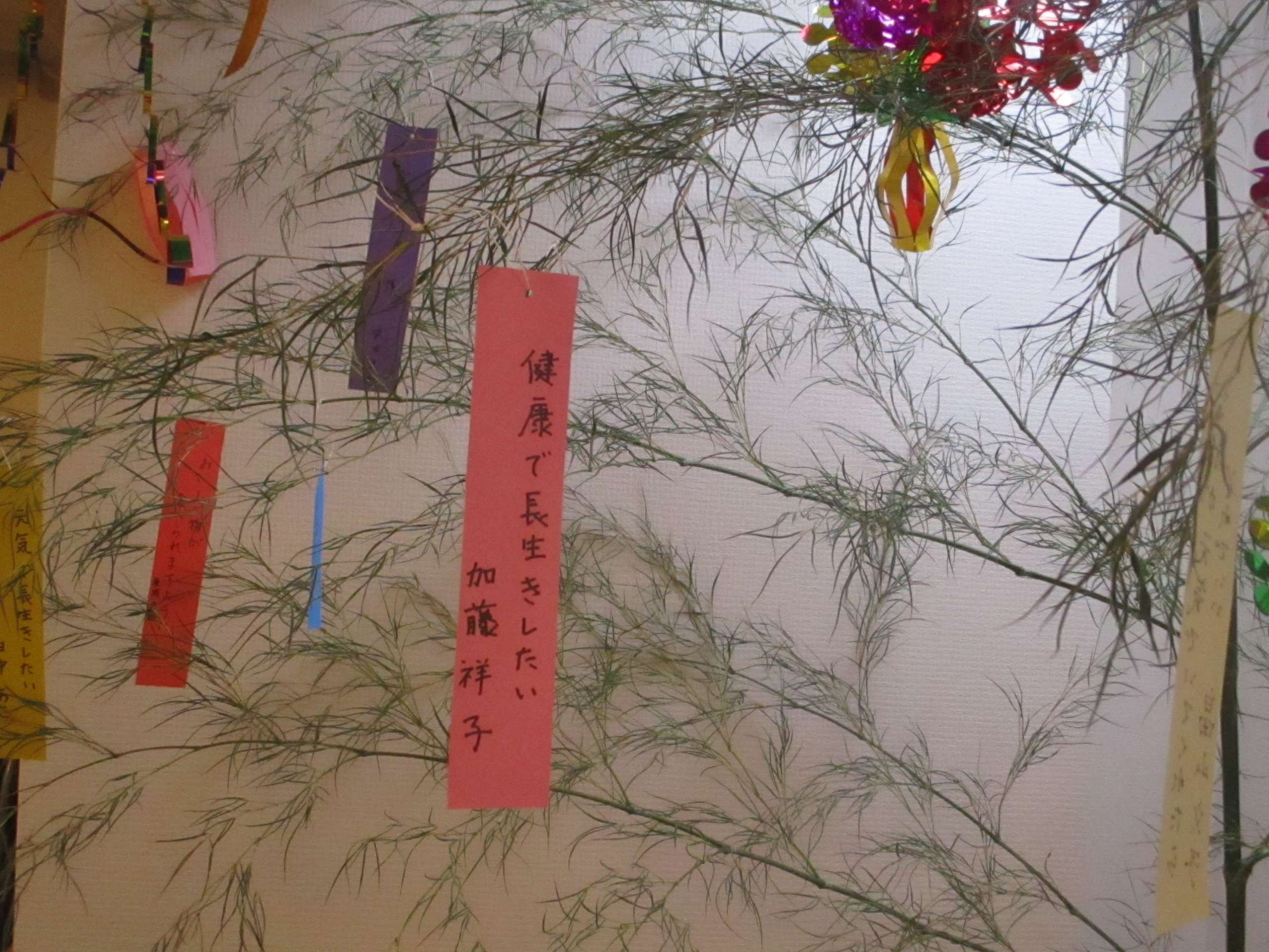 皆様、短冊に願い事を書き笹の葉に吊るしました。