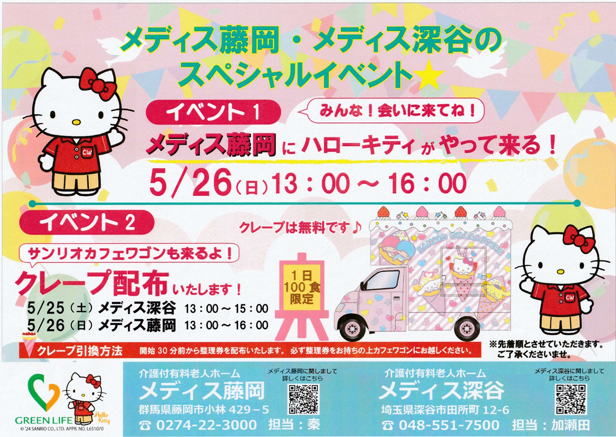 ※メディス藤岡のイベントは5/26です。こちらはキティちゃんも来ます。