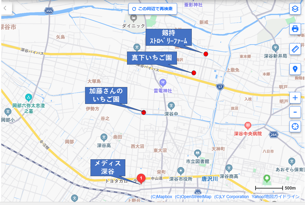 参考に何ヵ所かいちご園を紹介しておきます(地図参照)。