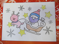 12月の塗り絵は「サンタとトナカイ」みなさん思い思いの