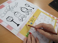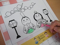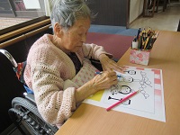 3月のカレンダー塗り絵を入居者様が制作中です(*^^*)