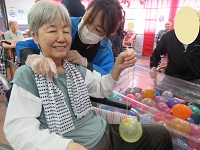 うまくヨーヨーが釣れて職員と喜ばれる入居者様♪