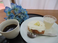 今月のおやつレクは【レモンクリームロールケーキとビール風りんごゼリー】でした。