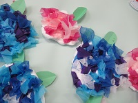皆さんに作ってもらった紫陽花は軽い紙粘土で作ったので