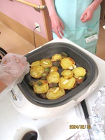 中庭で収穫したさつまいもが残っていたので、ふきのとうと一緒にバターで炒めました。