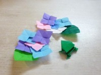 この時期の風物詩ということで、あじさいやカエルを作ってみました。