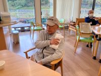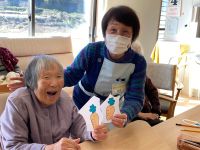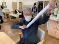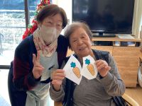今日は毎月来訪して下さる「介護相談員」の方が来てくださいました。ご入居者様の方々も顔馴染みの方なので、皆様お会いするのを楽しみにされています。本日は来年に向けて壁飾りの準備に取り組まれました。来年は午年なので、今日は馬の大好物の人参を作りました。完成が楽しみです!