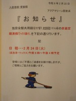 2月24日(火)施設全館共用部の床面定期清掃(ワックス掛け)が8:00~16:00で予定されております。