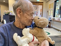 私とわんこ Posted on 2025年6月26日 by シーハーツ松戸 相談員の吉田です。 シーハーツ松戸では、たくさんの動物達が、皆様をお出迎えしています。 今やペットも家族同然!! 高齢者の方へのペットぬいぐるみに対する効果は、孤独感の軽減、精神的な安定、コミュニケーションの促進、認知機能の維持など色々な効果が期待できます。 「う~ん 可愛いですね~😍」「よしよしヾ(・ω・`)」 私のお気に入りショット📷 とても素敵な写真!!I様の人柄が出ています☺️ 関連