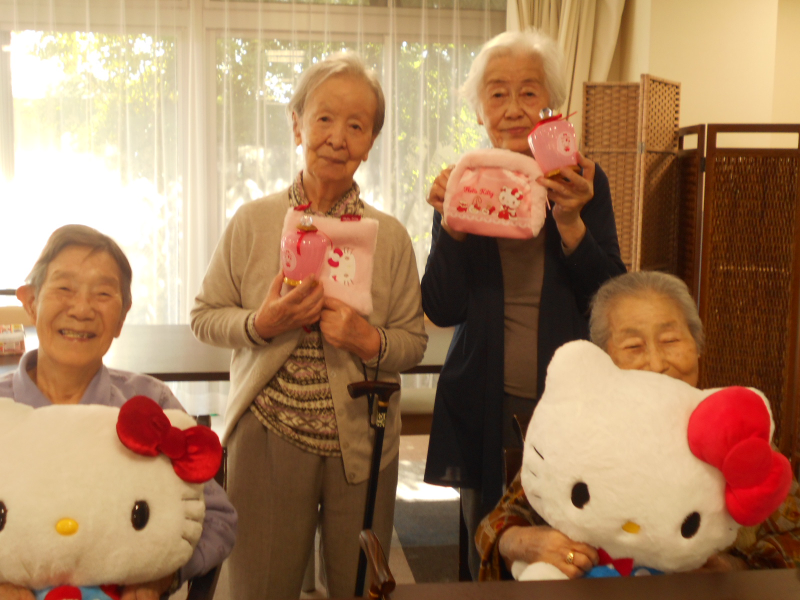「化粧してくれば良かった」「ちょっと待って」と眼鏡をかけなおしたりと、可愛いいキティちゃんを前にすると、皆さん準備が必要みたいでした。