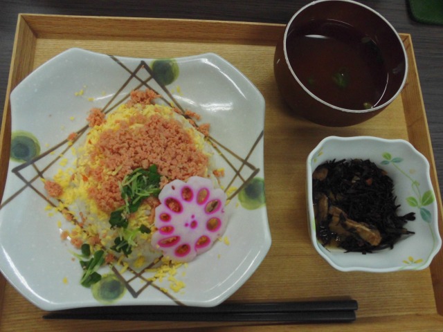 でも今日のお昼ご飯は、皆様のお好きなメニューのちらし寿司でした!!