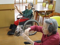 腕を大きく伸ばしたり、回したり、口を大きく開けて顔を動かしたり、