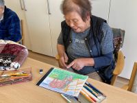 今日の朝は、来年の干支である馬の絵の塗り絵をして頂きました。