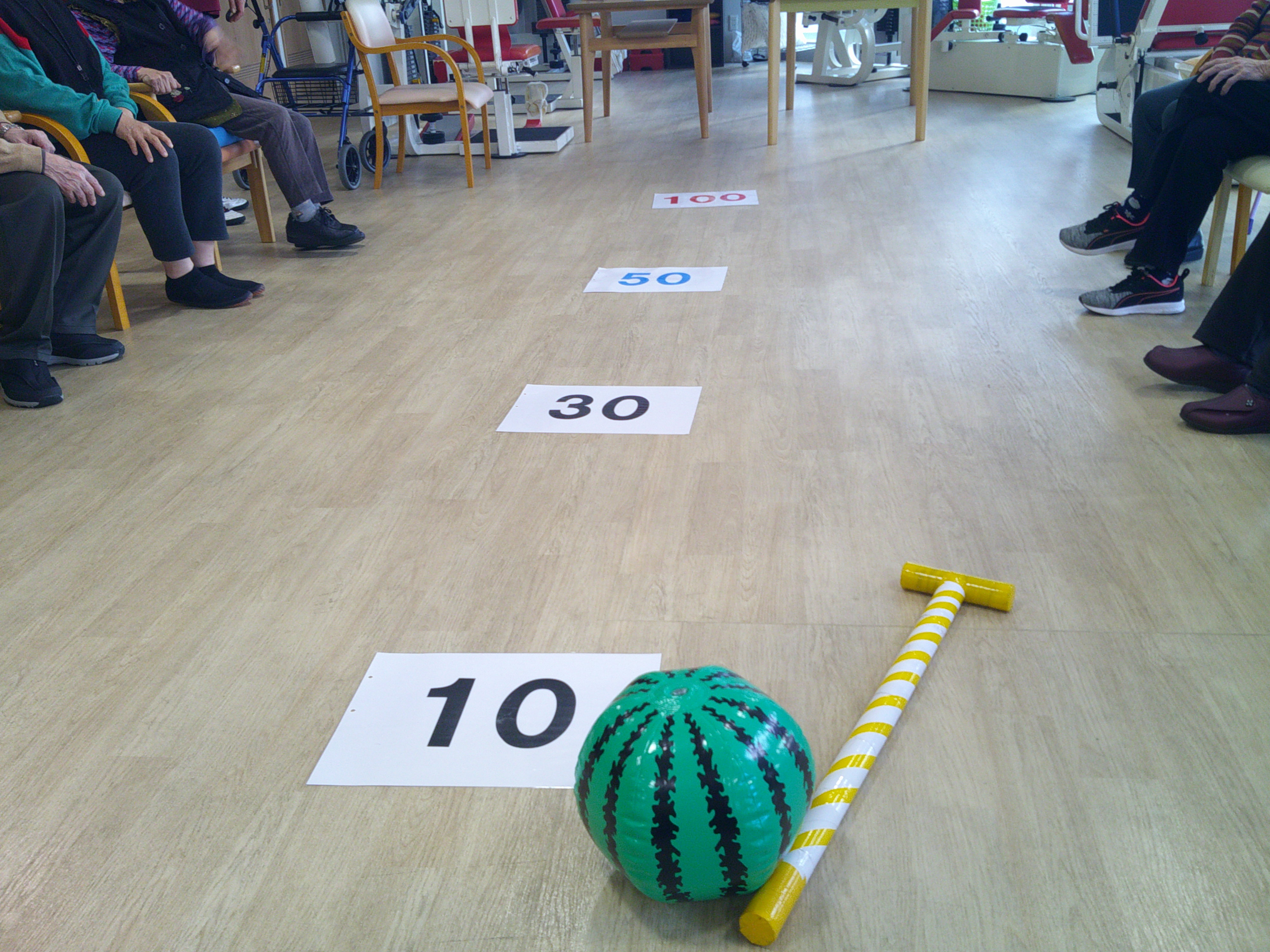 本日のレクリエーションは“何点まで飛ばせるかな”という