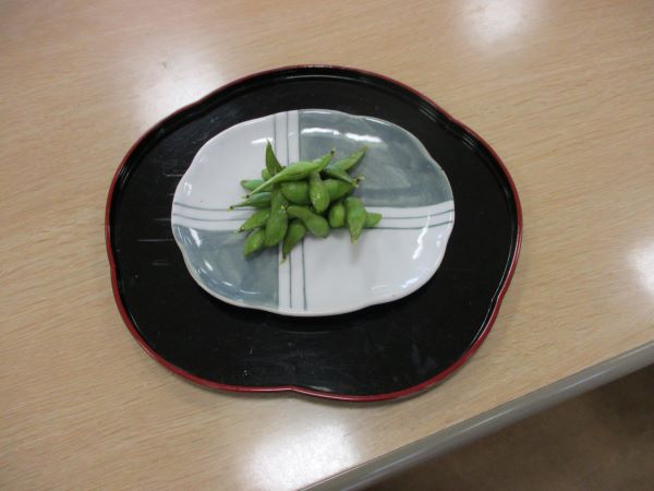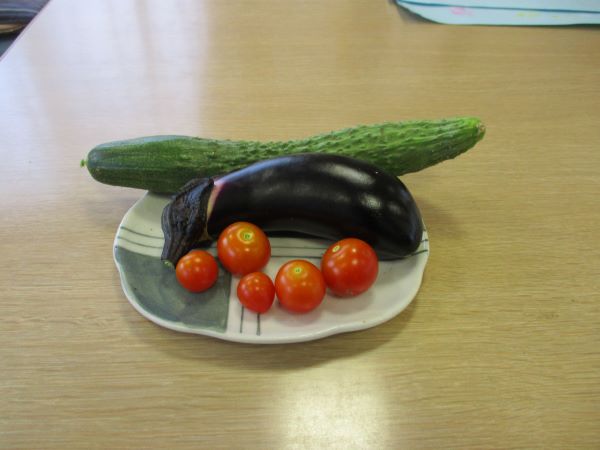 小さな畑でキュウリとナス、ミニトマト、今年、初挑戦した枝豆を植えていて少しでしたが枝豆が出来たのでその場で茹でて一粒ずつでいたがみんなで味見をしてみました。
