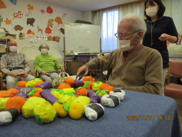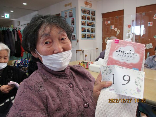 賞品は入浴剤やタオル、大当たりのデイサービスで育てた大根!